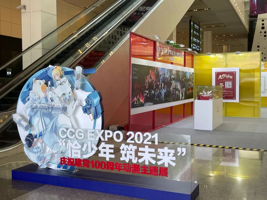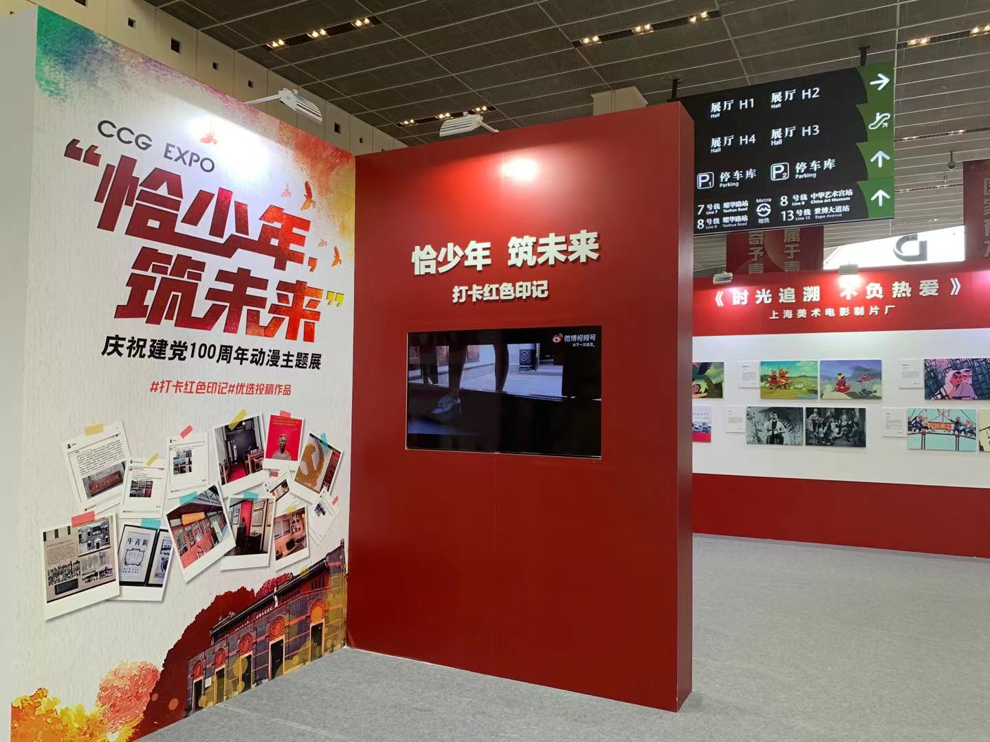 围绕建党百年主题,本届展会在中厅特设CCG EXPO“恰少年 筑未来”——庆祝建党100周年动漫主题展,展览包含《百年风华 青春筑梦——主题动漫展播》《血与火——新中国是怎样炼成的》人物长卷、《时光追溯 不负热爱》等精彩内容,用年青一代喜闻乐见的形式回顾党史。