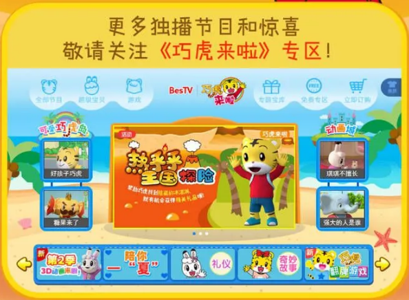 专区还推出《可爱巧虎岛》动画片,讲述了巧虎、琪琪、铃铃、桃乐比在“巧虎岛”上快乐生活的故事。此外,百视通还为《巧虎来啦》专区打造了翻牌大挑战和垃圾分类2款巧虎电视小游戏。
