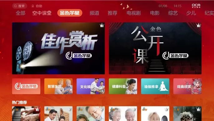 作为全国首个中老年专属学习平台,金色学堂依托上海市教委的教育专业度,以及SMG、东方明珠新媒体在广电技术、渠道传播、内容编排等方面的综合优势,金色学堂规划了智慧生活、文化娱乐、健康科普三大节目带,网罗来自上海老年大学、上海学习网等的优质课程,覆盖了有线电视、IPTV和移动端百视TV APP大小屏全渠道。线上频道开播至今日均收看已突破100万人次,上海累计收视用户超1.5亿户次。