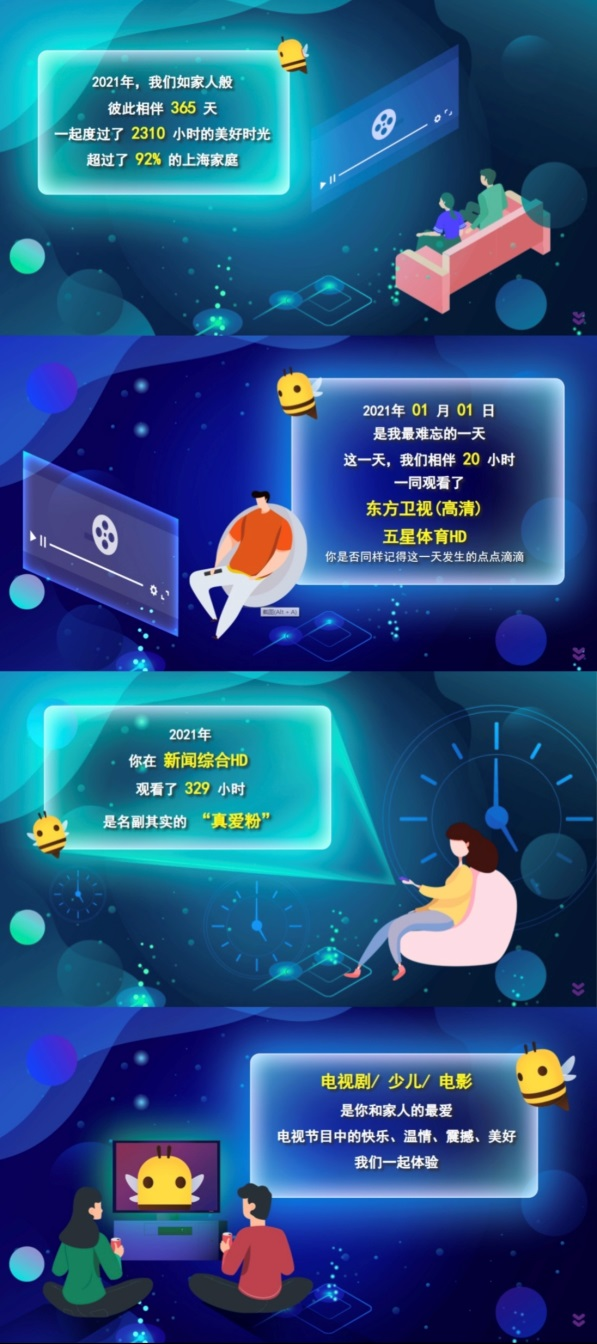 在每份个性化收视报告的最后,都能看到百视通写给每位上海IPTV用户的深情告白:“2021,我们相伴度过了无数美好的日夜。2022我们依然是你背后的一道光,为你消除疲惫、积蓄能量,让你在每一个平凡的日子里闪闪发光。”