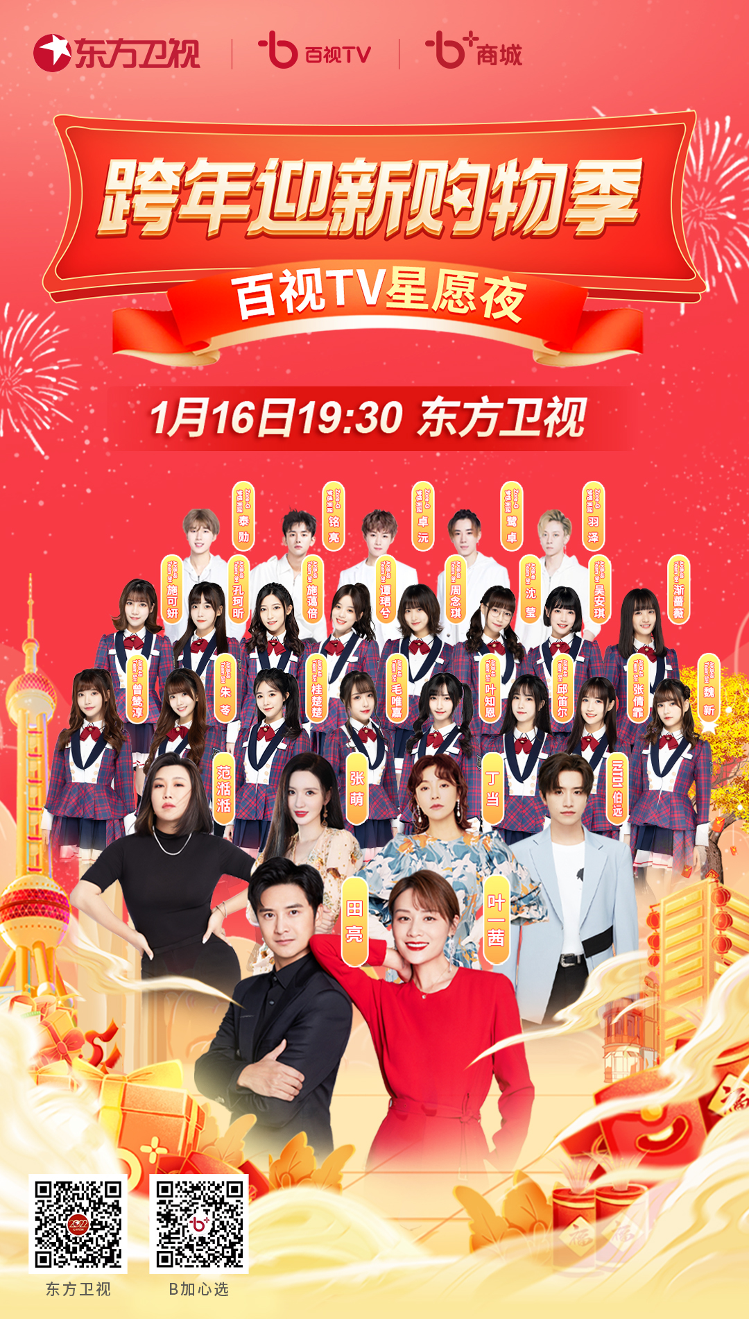 为进一步擦亮“上海购物”金字招牌,加快上海国际消费中心城市建设,由上海广播电视台、上海文化广播影视集团有限公司(SMG),东方明珠新媒体股份有限公司(东方明珠新媒体)全力打造的一档喜迎新春、边看边买的视听盛宴——《百视TV星愿夜》特别节目,1月16日19:30-22:00在东方卫视、百视TV双平台盛大直播呈现,为正在沪上各大商圈火热进行的“跨年迎新购物季”再添一道新场景,再掀一把新消费热潮。