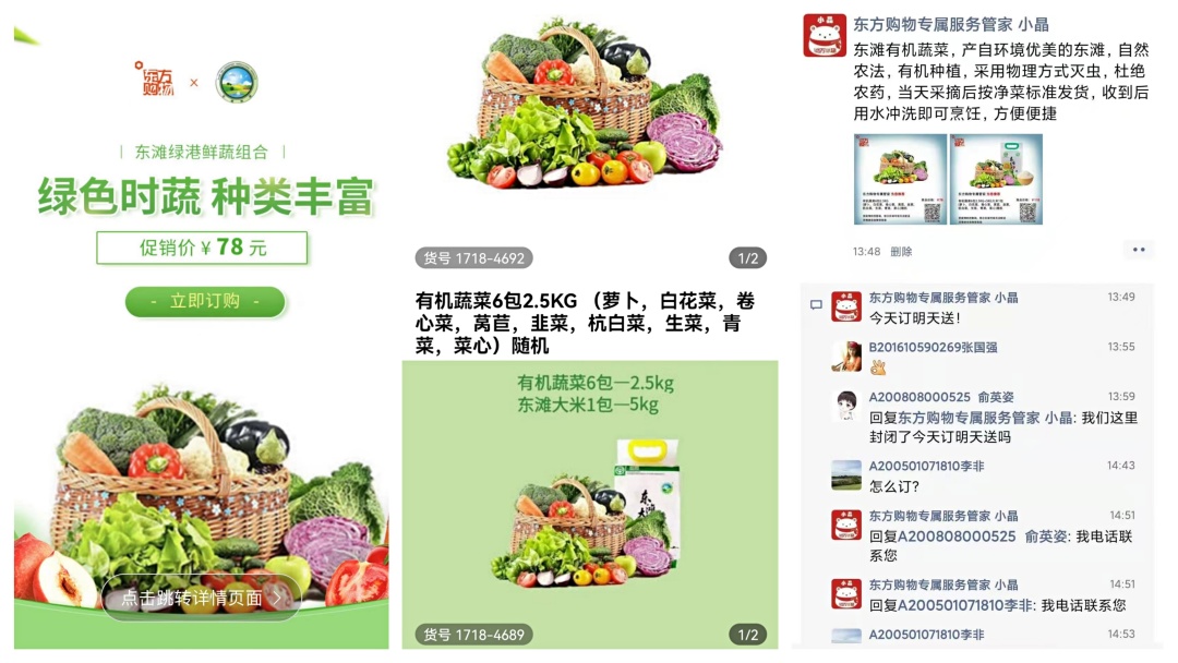 考虑到部分社区老龄化程度较高、老年人在线买菜不便的实际情况,东方购物一方面发动自有客服团队通过电话的方式,一通通电话打向五里桥、打浦桥、半淞园、南京东路等老年人居住密集的街道,切实解决老年人买菜的需求,并为他们提供货到付款的支付方式,在“倒春寒”中暖心服务老年人们,让大家在此特殊时期也能享受到上海这座城市商业发展的便利与成果。