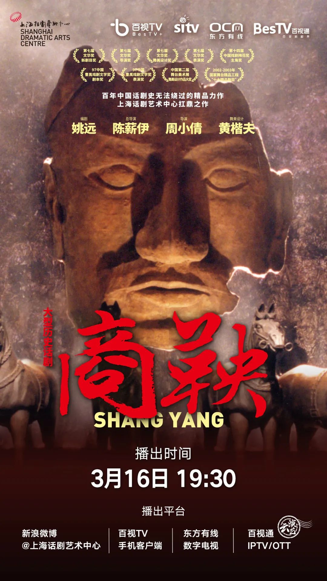3月15日起,上海话剧艺术中心就率先开动,每晚19:30在百视通IPTV、互联网电视,东方有线,百视TV APP等新媒体平台限时播出一部精选优秀话剧剧目。已经上线的《商鞅》《追梦云天》《冒牌人生》等剧作都收到了观众的热烈反响。