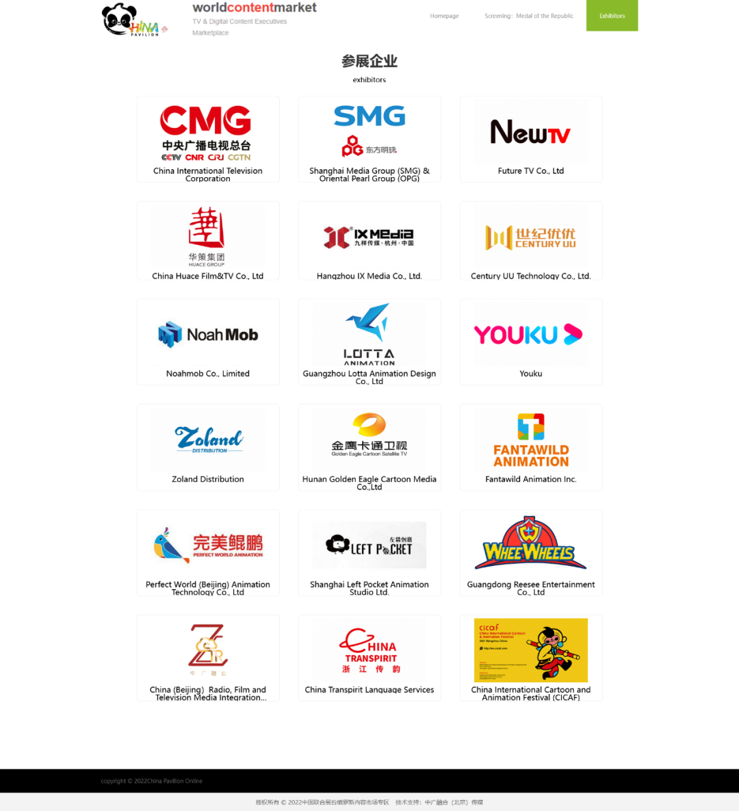 受全球新冠疫情等多种因素的影响,即日起至8月10日,莫斯科春季世界内容市场(WCM)线上开放英语、俄语官方展会通道,为期三个月。东方明珠新媒体旗下上海尚世影业有限公司、上海五岸传播有限公司受国务院新闻办公室、国家广播电视总局委托,承办“中国联合展台”线上展示专区,并策划组织了推介会和展映会系列活动,汇聚了近几年最具热度、口碑和影响力的重点电视剧片目,描绘了中国人民的现实生活,展现了中华民族悠长的历史文明,助力中国影视军团“文化出海”。莫斯科春季世界内容市场(WCM)是俄罗斯境内举办的俄语地区规模最大的媒体展会之一,平均每年有来自40多个国家和地区,超过500家企业1200人参加。