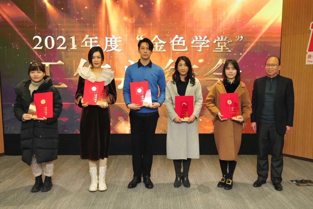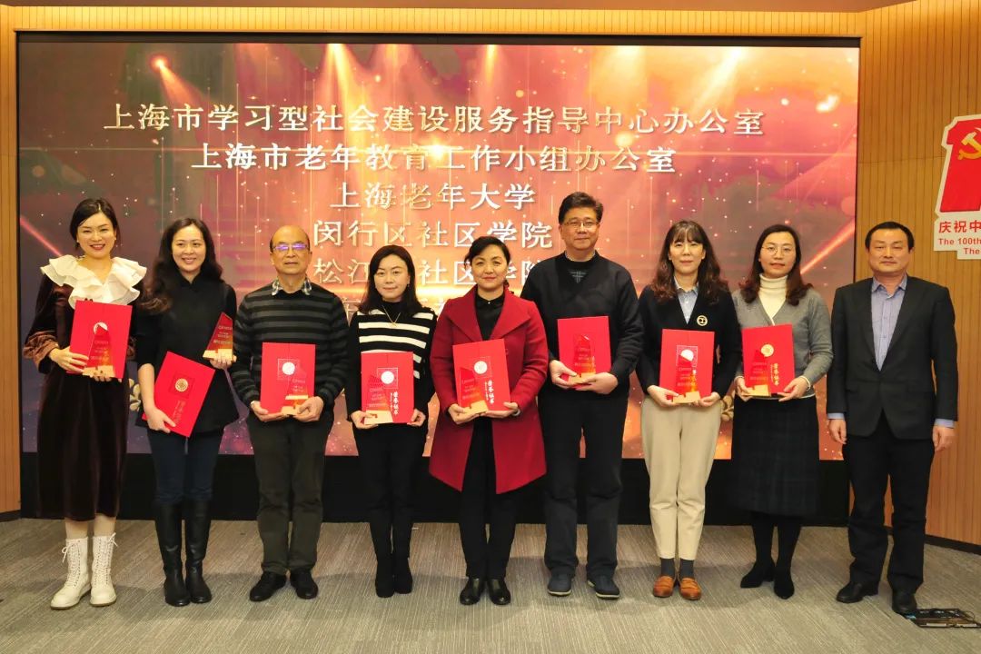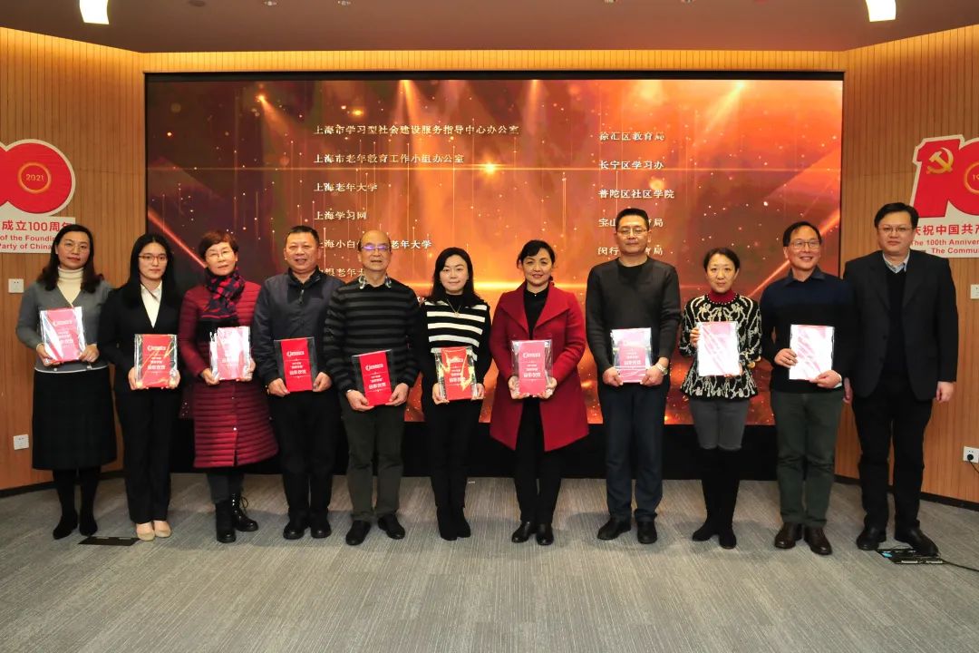 徐吟、蒋赟、解昉、许建芸、刘颖获得2021年度“金色学堂”教师奖最佳人气奖;周培鑫、李晓荣、李东、刘政、郭辰怡获得教师奖最佳风采奖;上海市学习型社会建设服务指导中心办公室等8家单位获得最佳创意奖;静安区社区学院等8家单位获得最佳制作奖;上海老年大学等8家单位获得最佳组织奖;市教委及各区教育局23家单位合作伙伴奖。