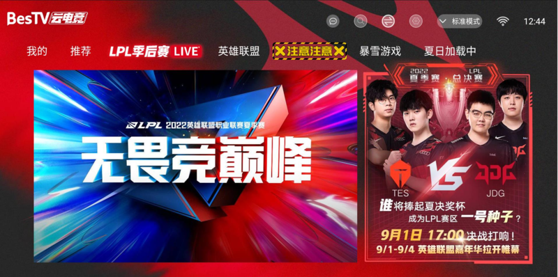 备受瞩目的2022年英雄联盟职业联赛(LPL)夏季赛决赛于9月1日正式打响。作为英雄联盟职业联赛2022、2023赛年的大屏独家合作伙伴,百视通网络电视技术发展有限责任公司在旗下IPTV、互联网电视以及“BesTV云电竞”大屏产品等平台全程直播该场顶级赛事。除了决赛之外,LPL赛区全球总决赛资格赛、2022联盟嘉年华、LPL世界赛出征仪式等精彩内容也将全部登陆百视通各平台“云电竞”专区,为电竞迷们打造一场更高清、更沉浸的大屏“云上狂欢”。