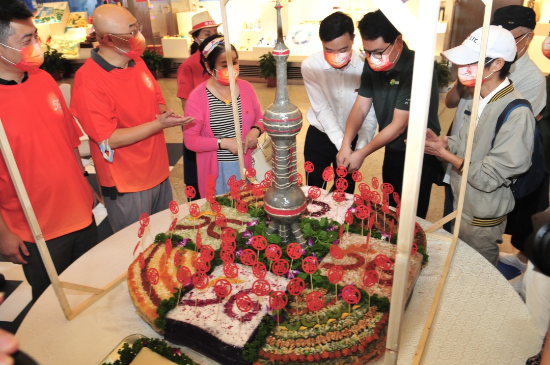 这是东方明珠塔为当天到来的老年游客准备的节日惊喜,采用9大类99种食材,以9道工序耗时9日制作,象征福如塔高、洪福齐天。当天来到东方明珠塔的老年朋友也可免费领取这份充满心意的伴手礼。