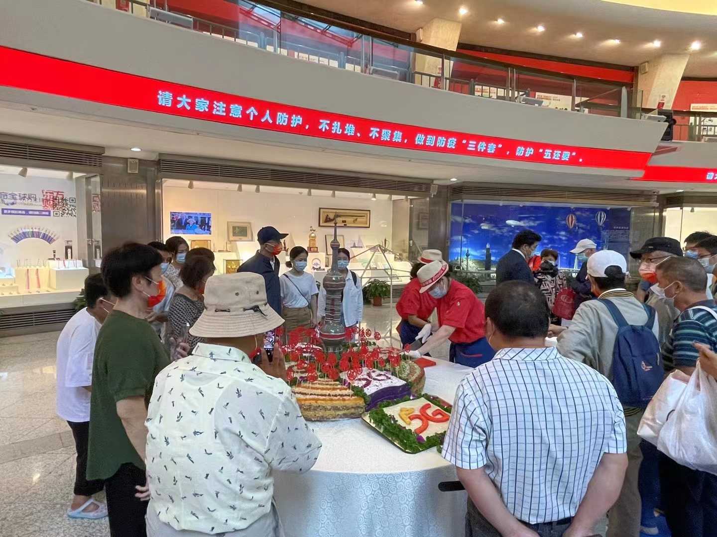 重阳糕也是节日必不可少的食品。在东方明珠塔零米大厅的广电5G地标快闪店门口,出现一个直径和高度皆为99厘米的巨型重阳糕,“60+”体验官们在此体验满满的重阳仪式感。