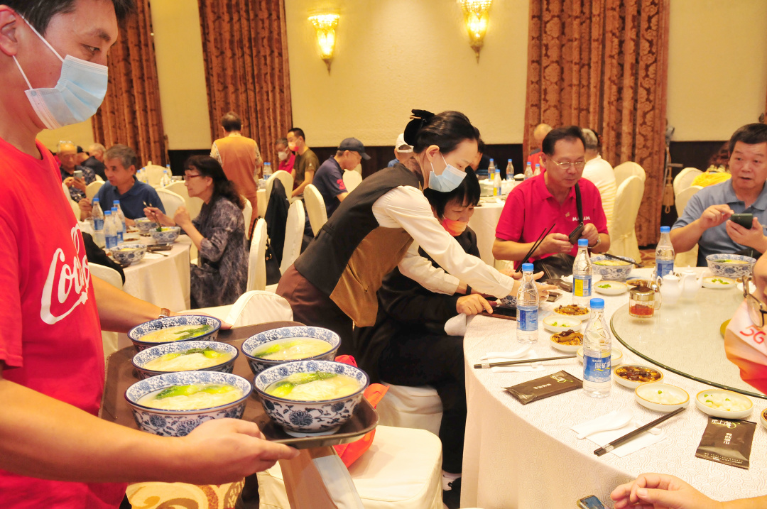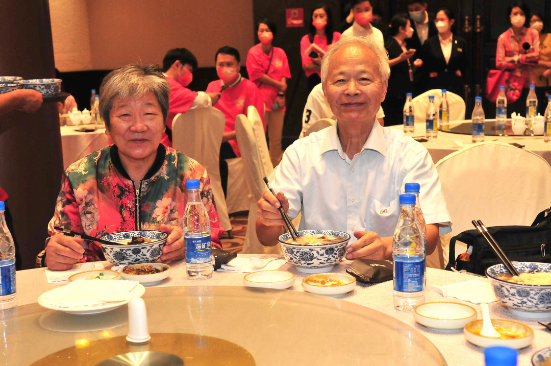 东方明珠塔老上海8号餐厅为“60+”体验官送上热腾腾的长寿面,“小荧星”艺术团的小朋友带来了精彩的文艺表演。