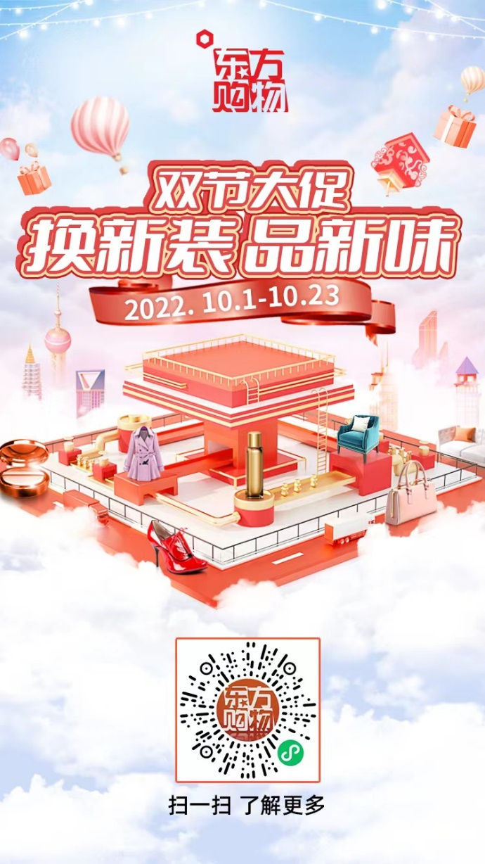 10月1日至9日,国庆节与重阳节双节同庆,东方购物特别推出“双节大促”大直播。10月4日“重阳关爱暖心日”当天东方购物还有特别福利加码!