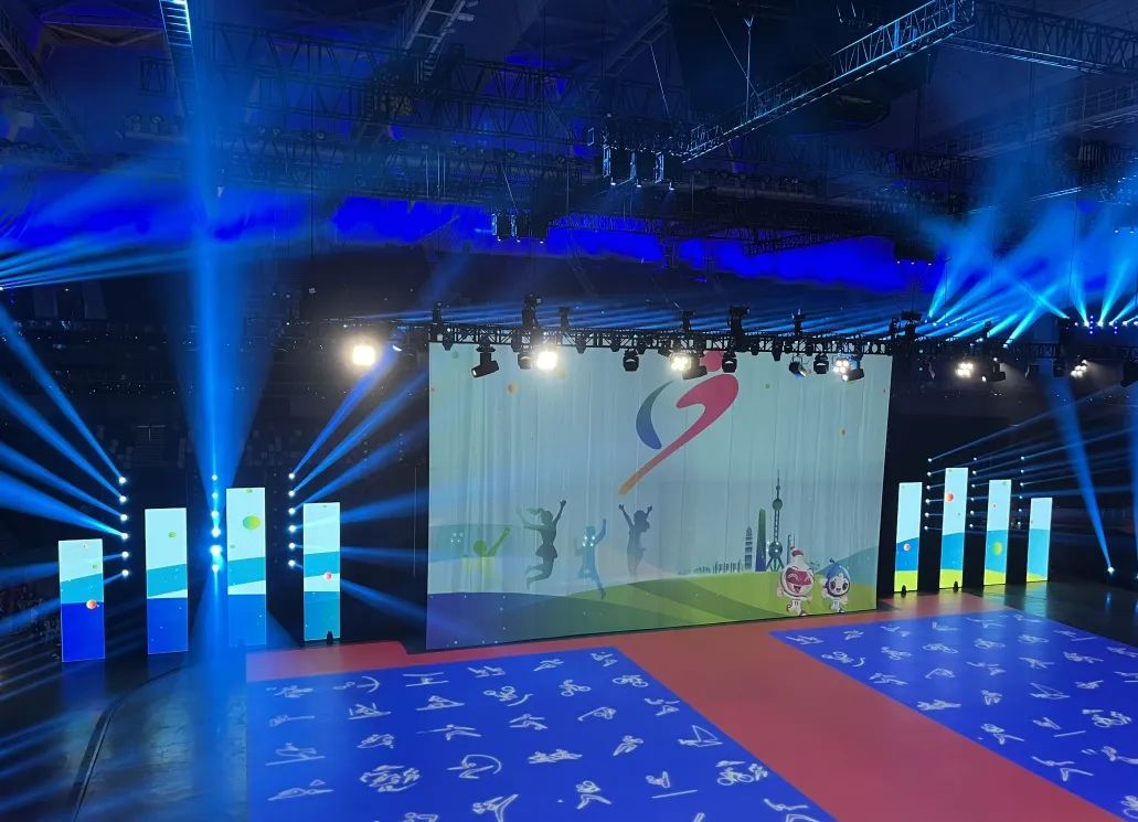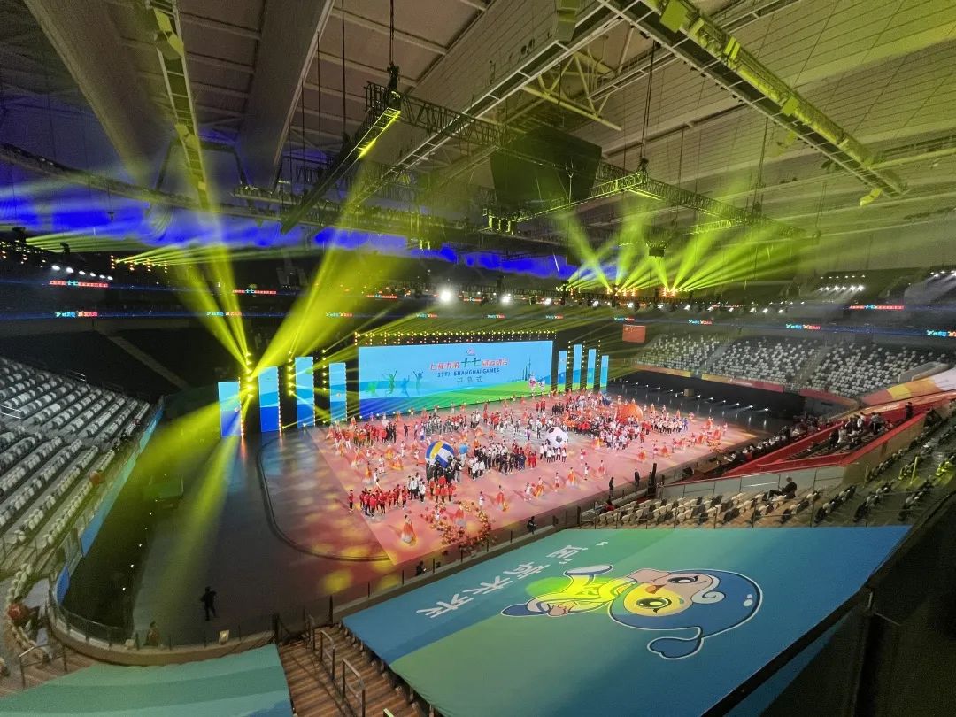 舞美团队对开幕式现场进行视觉氛围的整体设计和包装,营造出弘扬体育精神、展现青春风采、彰显健康活力的氛围。