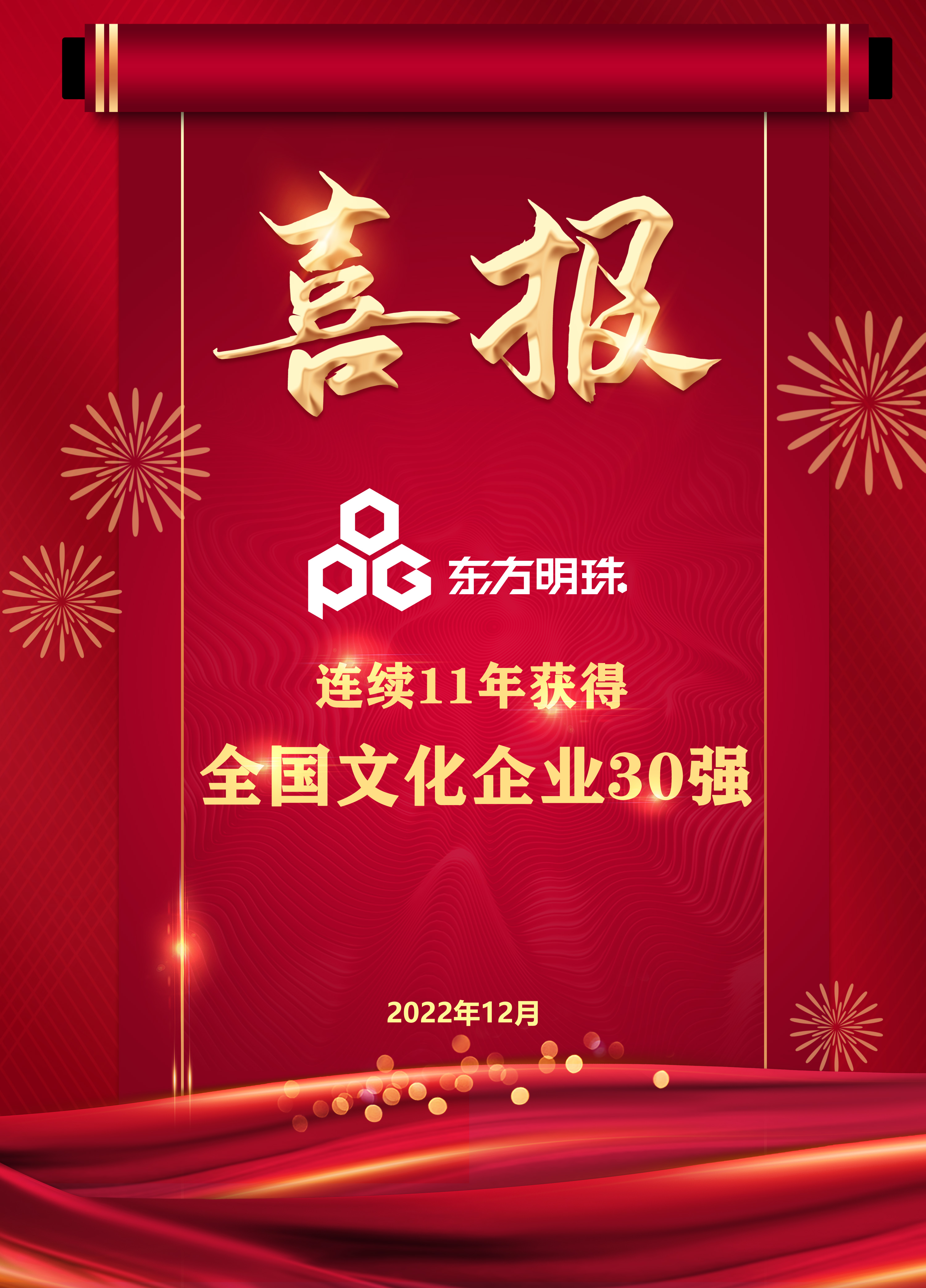 2022年12月28日,第十四届“全国文化企业30强”名单出炉,东方明珠新媒体股份有限公司(以下简称:东方明珠新媒体)连续第11年入选。