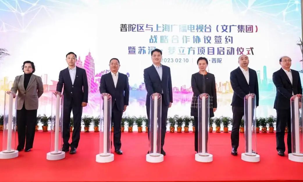 2月10日,上海广播电视台、上海文化广播影视集团有限公司(简称:上海文广集团)与上海市普陀区人民政府(简称:普陀区)签订战略合作协议,同时,由上海文广集团旗下东方明珠新媒体股份有限公司与上海市普陀区文化和旅游局、上海市普陀区国有资产经营公司(原普陀商业集团)合作打造的“苏河·梦立方”项目在武宁路24号(原家乐福广场)正式启动,以“腾笼换鸟”的方式更新沿岸传统业态,为区域文创产业增添又一高品质空间载体。