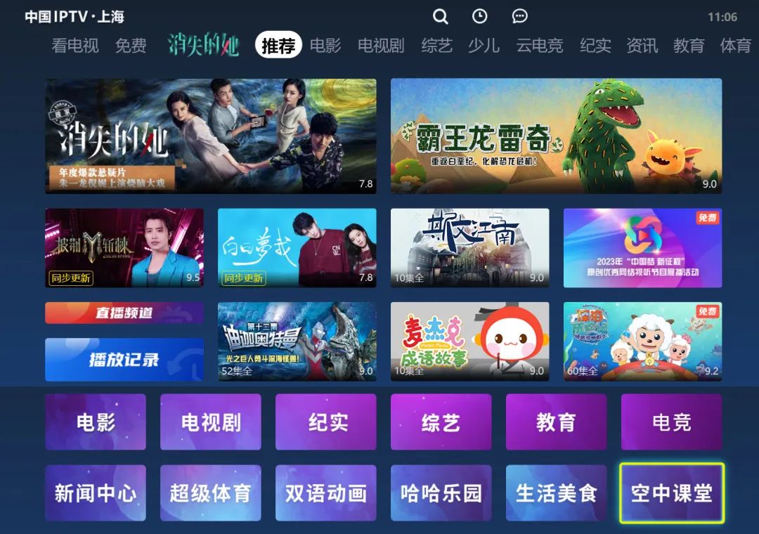 2023年秋季学期即将开始,为持续助力全市中小学线下教学,向广大师生提供教师研修和学生自主学习的数字化服务,在上海市教委指导下,由东方明珠新媒体股份有限公司旗下东方有线电视、百视通IPTV/OTT、百视TV APP等平台提供的“空中课堂”服务将作出新一轮调整:停止12路直播频道课程服务,继续通过东方明珠新媒体旗下各平台点播专区提供小学一年级至高中三年级的学习课程。