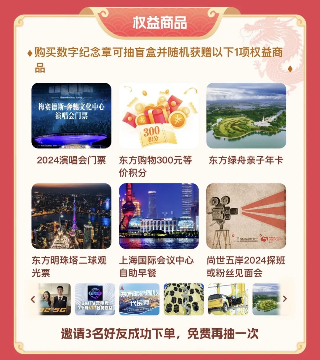 2、点击“购数字章 抽盲盒”,购买数字纪念章后,可抽取惊喜盲盒,随机获赠1项权益商品。