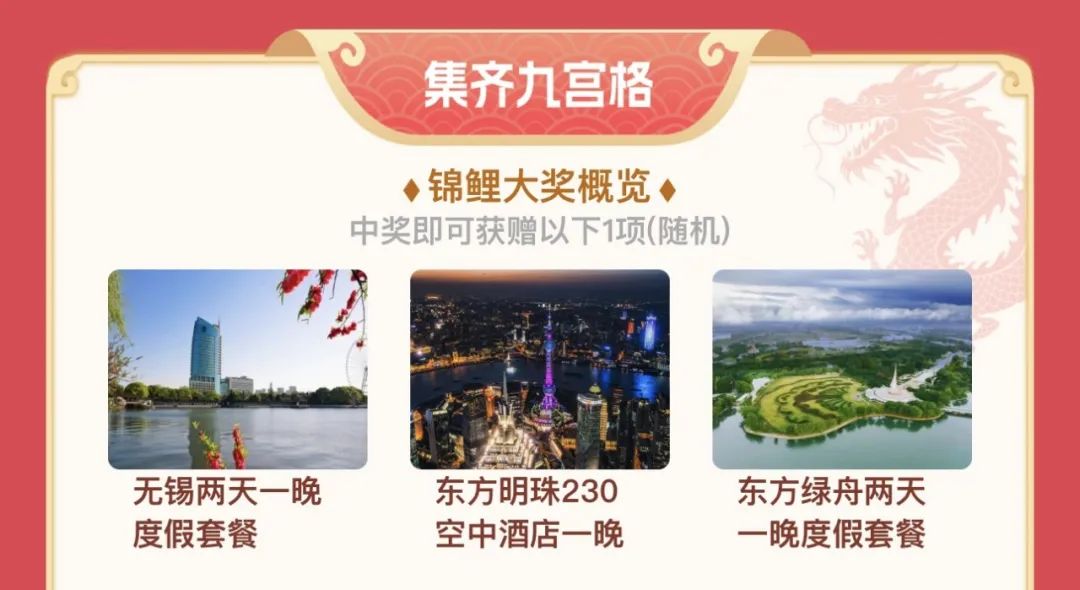 东方明珠230空中酒店一晚、东方购物-无锡2天1晚双人度假套餐、东方绿舟两天一晚度假套餐,件件重磅,幸运闪耀新一年!