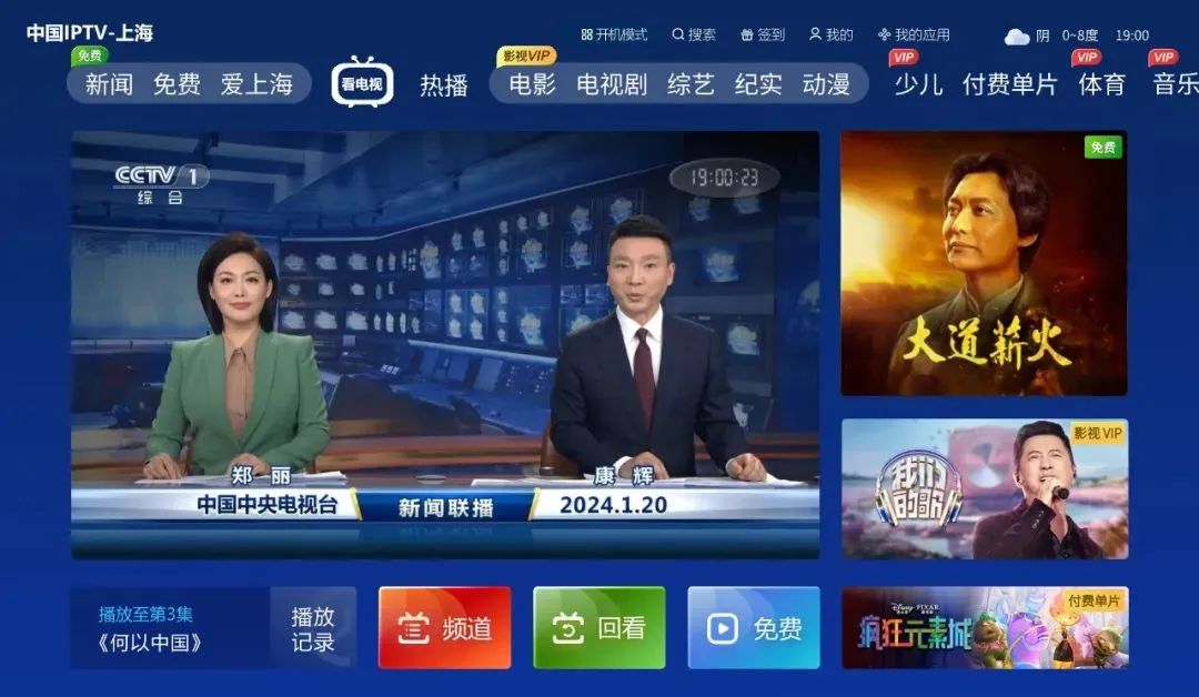 简化操作方法方面,更新升级后,上海地区有线电视用户、IPTV用户打开电视机就能全屏观看电视直播频道并默认播放CCTV-1,随后即可随心所欲“调频道”:通过遥控器“上下”键可切换直播频道,按“菜单”键可查看节目单。在全屏播放状态下,IPTV用户可通过遥控器“返回”键返回交互主页中的“看电视”页,享受更多电视服务。