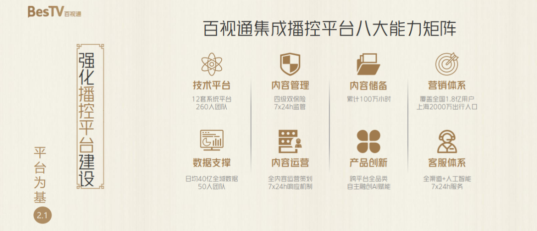 近年来,百视通以平台为基,不断强化播控平台能力建设;以协同为翼,与终端伙伴共谋发展。未来将秉承开放平台之心,持续积极与合作伙伴平稳对接,并在市场拓展上各施所长,共同建设优质的互联网电视产业发展新局面。