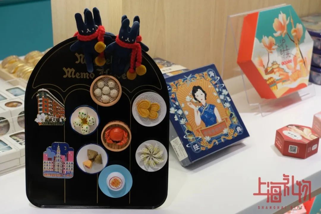 其中,不乏被国家文旅部评为“中国礼物”的旅游商品,如老凤祥珐琅艺术公司《美丽园蝴蝶》系列、享誉盛名的国际饭店蝴蝶酥伴手礼、第一食品特别推出的下午茶点心系列及话说上海系列旅游商品,还有以“阿拉上海”为主题制作,代表上海特色建筑和上海著名小吃样式的文创冰箱贴。《美丽园蝴蝶》系列去年还获得了中国旅游商品大赛金奖。黑猫警长、孙悟空、葫芦娃等沪上家喻户晓的卡通经典IP形象的文创商品,更是备受孩子们喜爱。