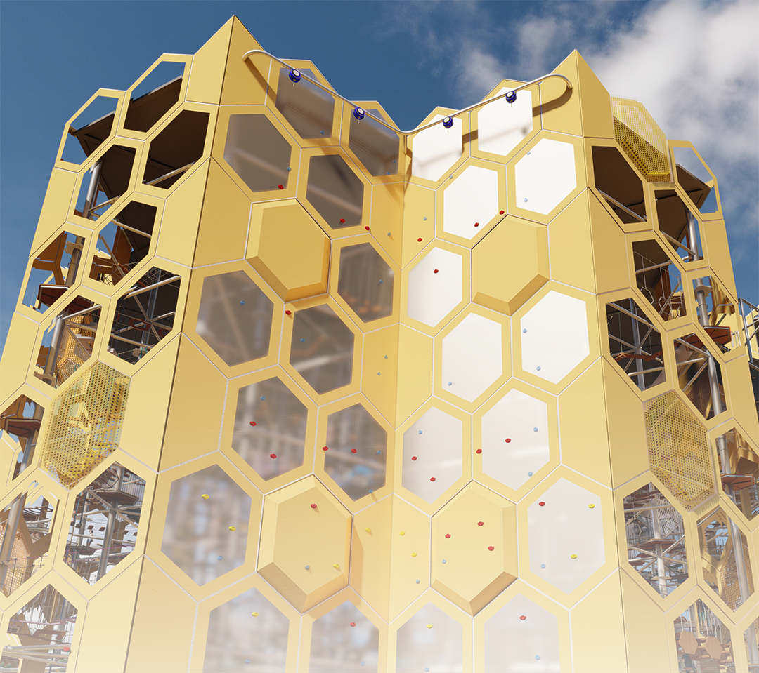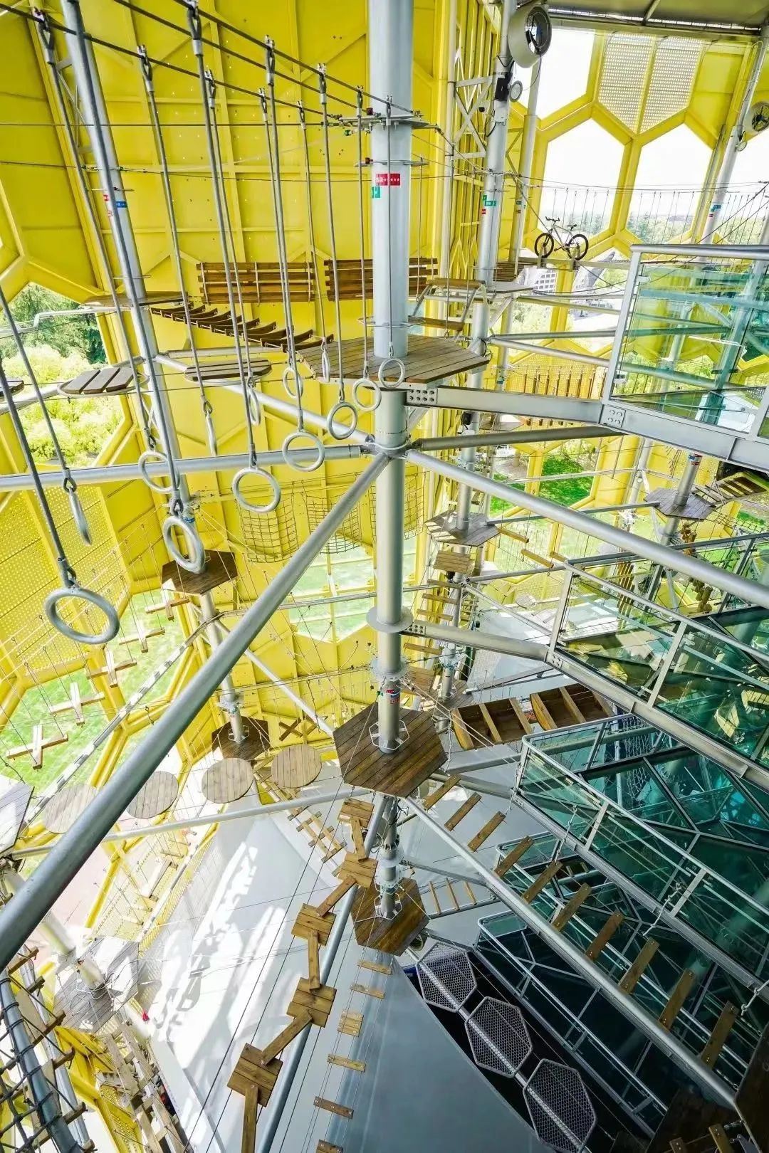 极限高空拓展项目蜂巢塔。