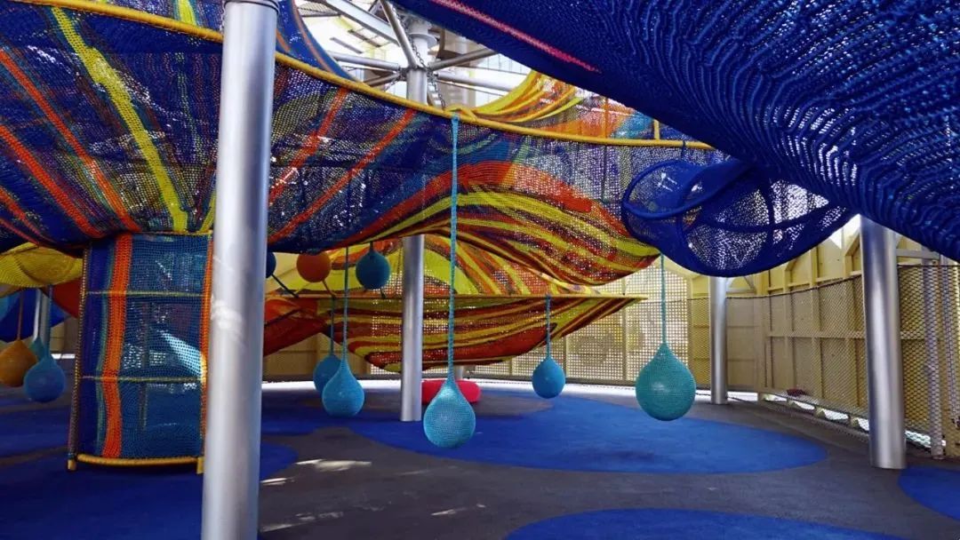 宇宙探索空间是国内最大的纯手工编织星空探索主题软性攀爬空间,它由引力波、星空、粒子、银河和虫洞五个充满宇宙奇趣的部分组成,吸引低年龄段孩子的探索欲望。