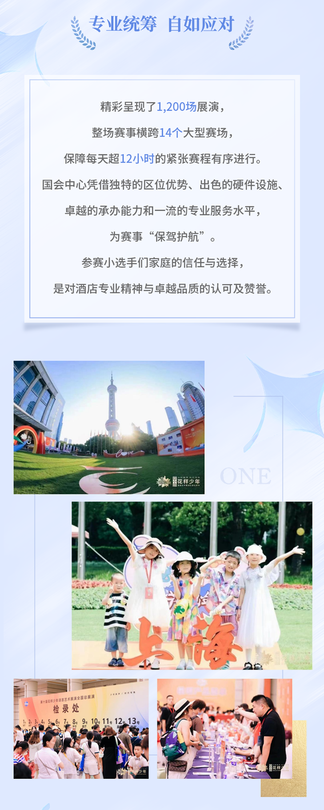 近日,第十届全国青少年语言艺术展演·全国总展演活动在东方明珠旗下上海国际会议中心东方滨江大酒店(简称“国会中心”)落下帷幕。为期五天的活动共进行1200场展演,接待超12000名青少年及其家庭,是国会中心承接的规模最大、持续时间最长的少儿教育培训类活动。