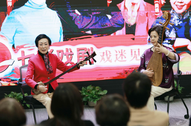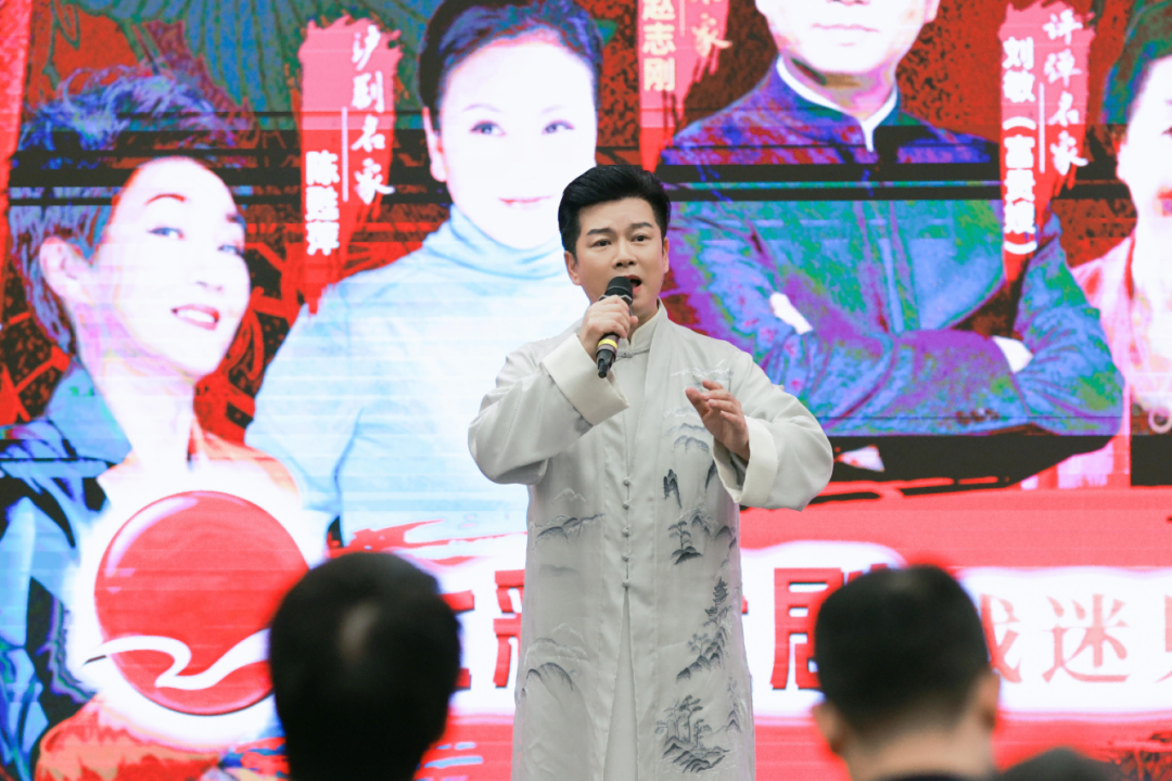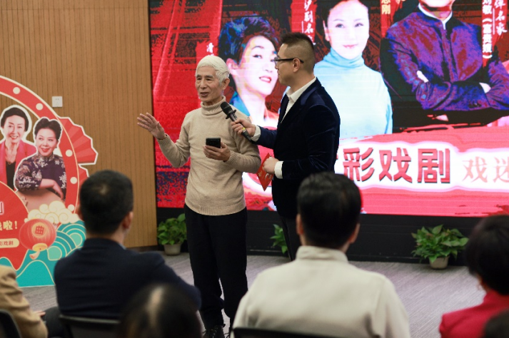 活动现场,一众戏曲名家纷纷亮相,为观众呈献了一场场精妙绝伦的演出。越剧名家赵志刚以深情之姿演绎《沙漠王子》选段,沪剧名家陈甦萍与滑稽名家许海俐携手带来沪剧经典曲目《盘凤》,评弹名家刘敏与骆文莲则用评弹演绎经典作品。他们的表演展现出了戏曲艺术在传承中的创新活力,令人眼前一亮。在名家表演与观众互动环节中,观众踊跃提问,与戏曲名家们探讨戏曲艺术的创作与传承。