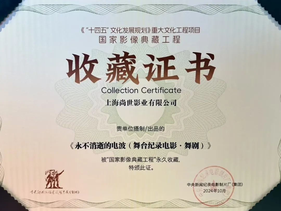 日前,由中央广播电视总台、中国文学艺术界联合会、广东省委宣传部指导,中央新闻纪录电影制片厂(集团)、中国电影家协会、珠海市委宣传部主办的第三届华语纪录电影大会推优盛典暨闭幕式在珠海举行。东方明珠旗下尚世影业获颁年度特别贡献纪录电影机构,由尚世影业、上海歌舞团联合出品的《永不消逝的电波(舞台纪录电影·舞剧)》被国家影像典藏工程永久收藏。