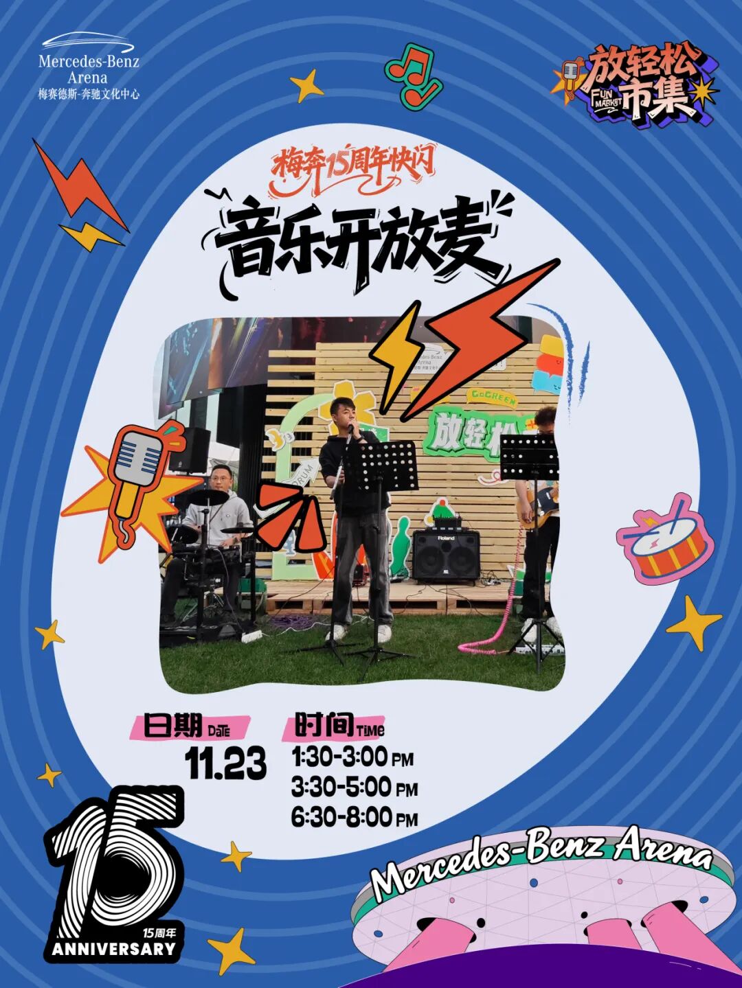 11月22日至23日,梅奔中心一层商业区将变身“15周年庆快闪嘉年华”,五大沉浸式互动板块依次展开: